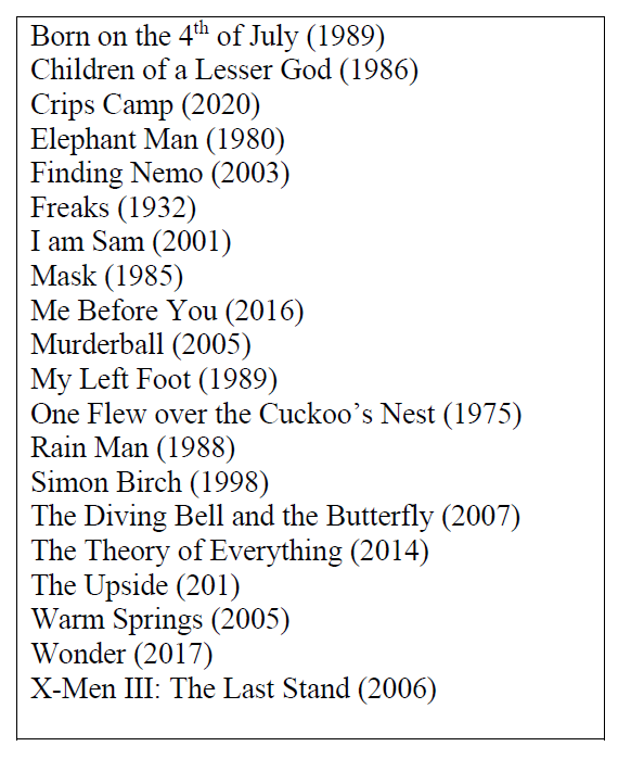 The depiction of mental illness in film has also improved over the past 50 years, with individuals with mental illnesses and sensory disabilities portrayed more realistically and empathetically (One Flew over the Cuckoo’s Nest (1975); Rain Man (1988); Children of a Lesser God (1986)). Rehabilitation trainees and professionals can watch these and other movies that show the human experience of disability with subsequent discussion at scheduled training opportunities (Table 2). These movies offer opportunities to discuss differences in how individuals with disabilities have been portrayed and treated in the past and currently, and how more positive portrayals can lead to the development of better skills for rehabilitation professionals—and ultimately greater understanding and acceptance of the personal experience of disability.