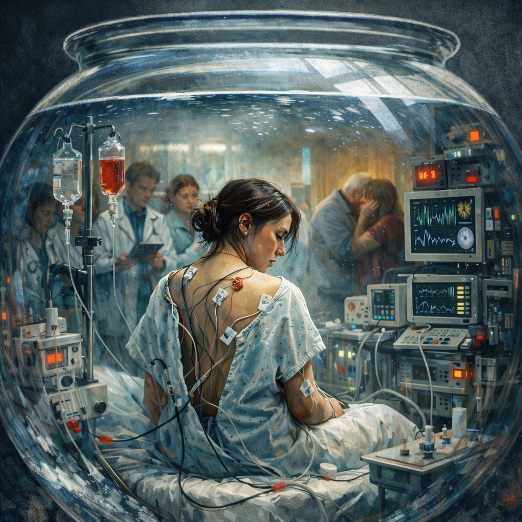 This brief, powerful poem captures the agonizing experience of a frightened hospital patient—anonymous yet on display to strangers, alone in their “silent cries.” Beautifully composed, this masterful piece hits home in a few, raw seconds.